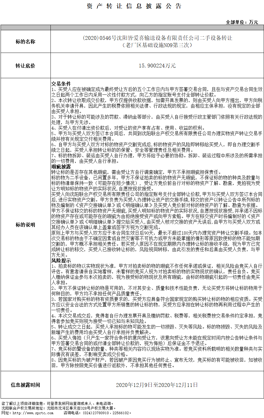 沈陽皆愛喜輸送設(shè)備有限責(zé)任公司二手設(shè)備轉(zhuǎn)讓(老廠區(qū)基礎(chǔ)設(shè)施NO9第三次)