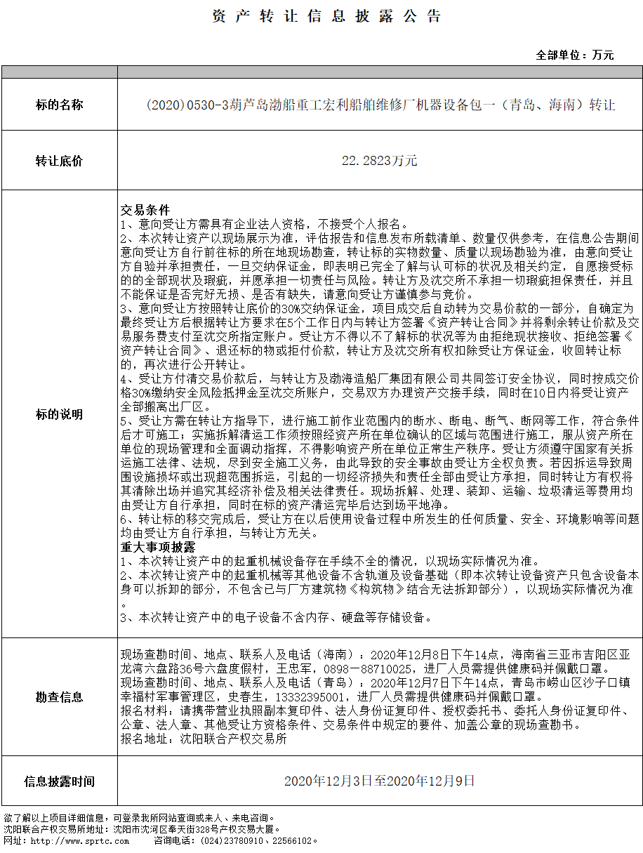 重工宏利船舶維修廠機(jī)器設(shè)備包一(青島、海南)轉(zhuǎn)讓