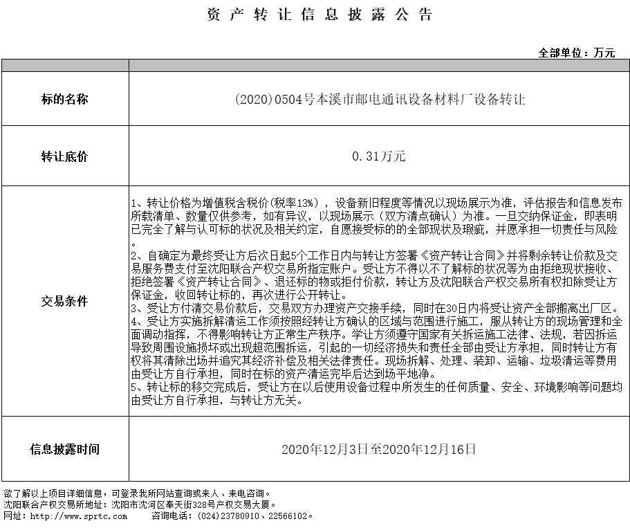 本溪市郵電通訊設(shè)備材料廠(通訊皮線設(shè)備、噴碼機)轉(zhuǎn)讓