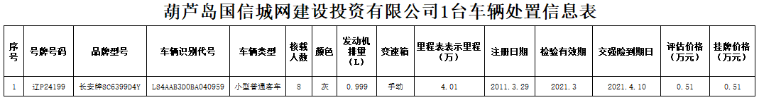 葫蘆島國信城網(wǎng)建設投資有限公司一臺車輛轉(zhuǎn)讓