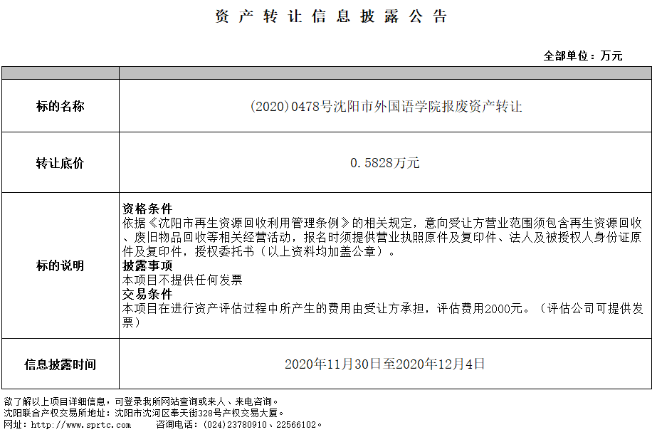 沈陽市外國語學(xué)院報(bào)廢資產(chǎn)轉(zhuǎn)讓