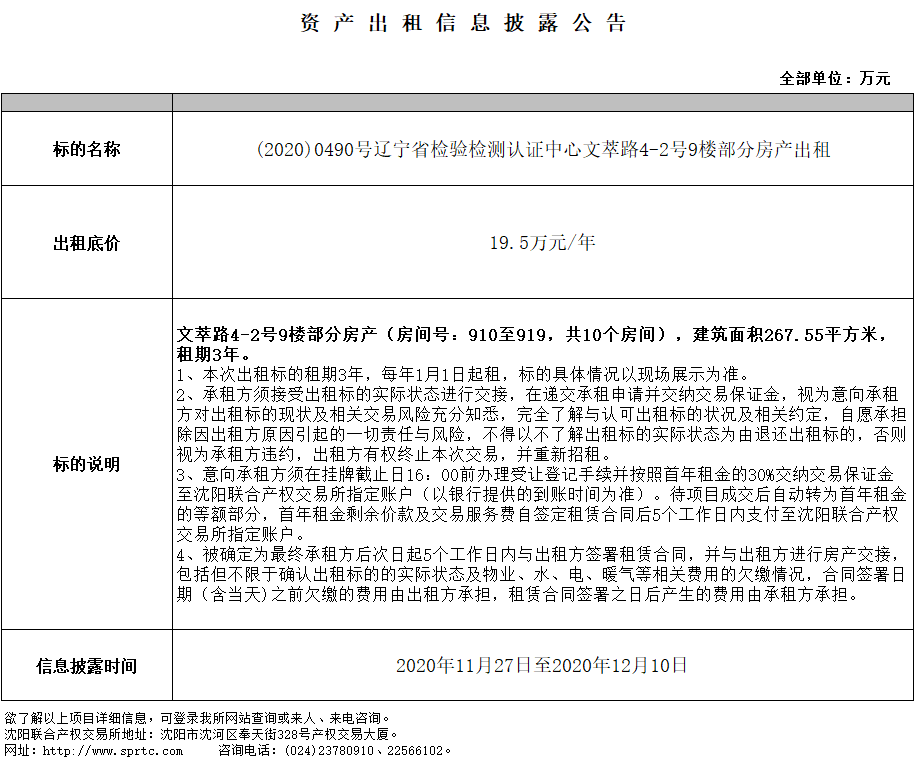 遼寧省檢驗(yàn)檢測(cè)認(rèn)證中心文萃路4-2號(hào)9樓部分房產(chǎn)出租
