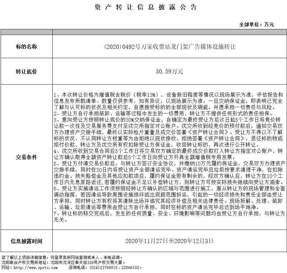 萬家收費(fèi)站龍門架廣告媒體設(shè)施轉(zhuǎn)讓