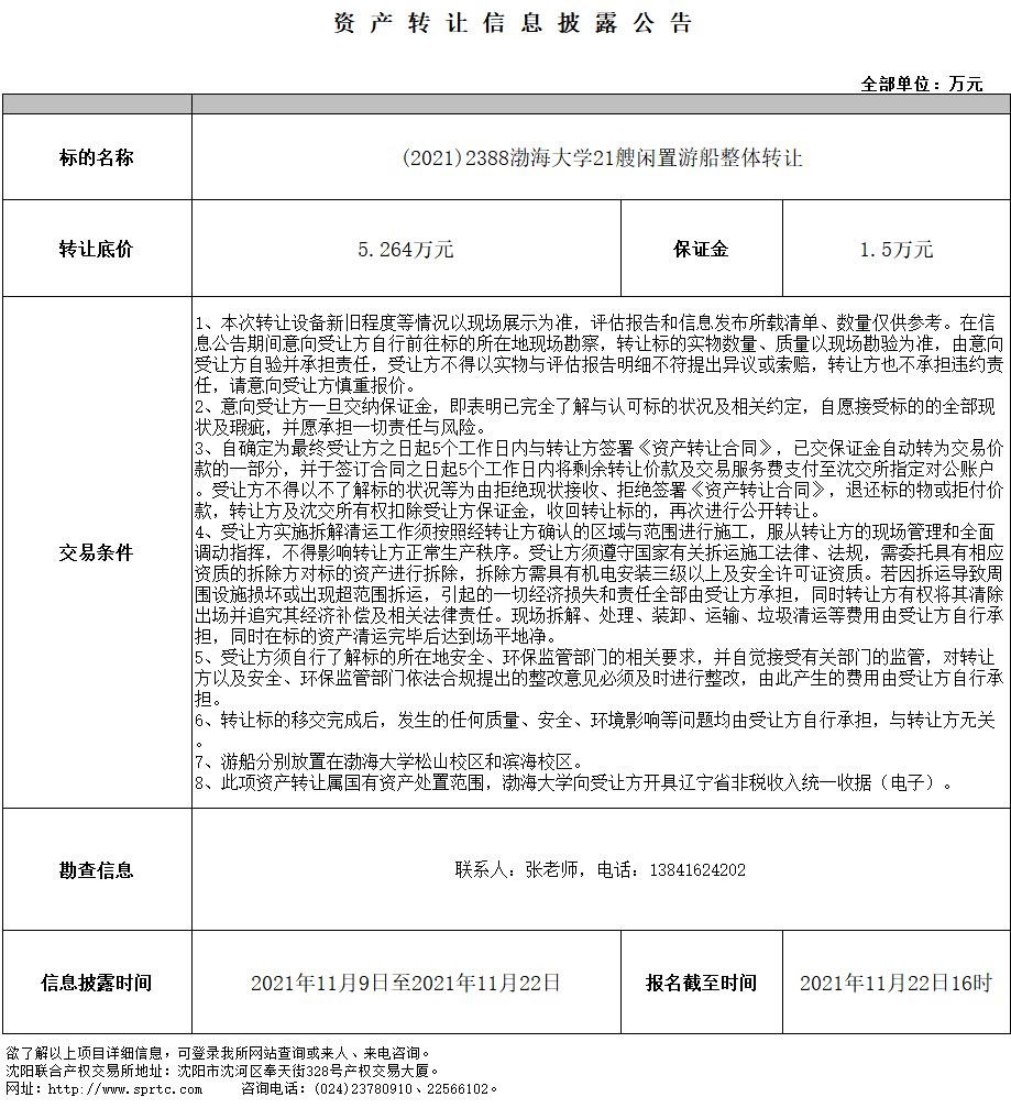 (2021)2388渤海大學(xué)21艘閑置游船整體轉(zhuǎn)讓