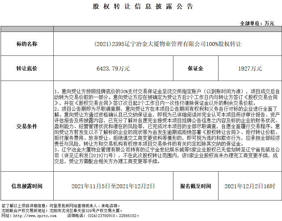 (2021)2395 遼寧冶金大廈物業(yè)管理有限公司100%股權轉讓