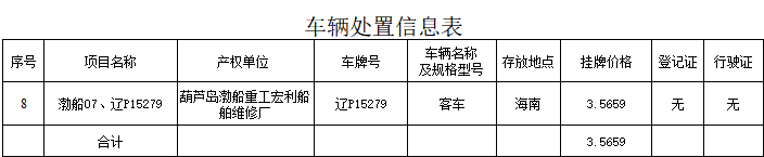 (2021)2397葫蘆島渤船集團(tuán)廠辦集體企業(yè)1臺(tái)車輛轉(zhuǎn)讓