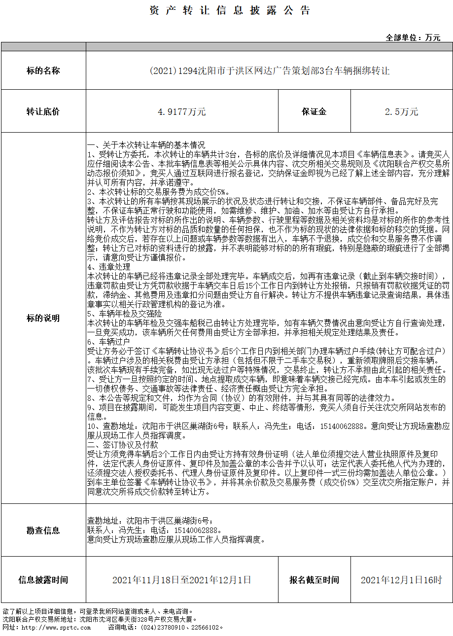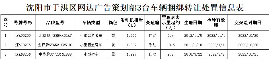 (2021)1294沈陽(yáng)市于洪區(qū)網(wǎng)達(dá)廣告策劃部3臺(tái)車輛捆綁轉(zhuǎn)讓