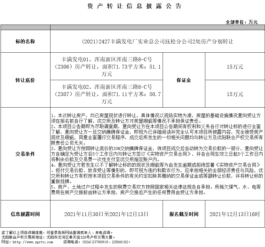 (2021)2427-2渾南新區(qū)渾南三路8-C號(2307)房產(chǎn)轉(zhuǎn)讓