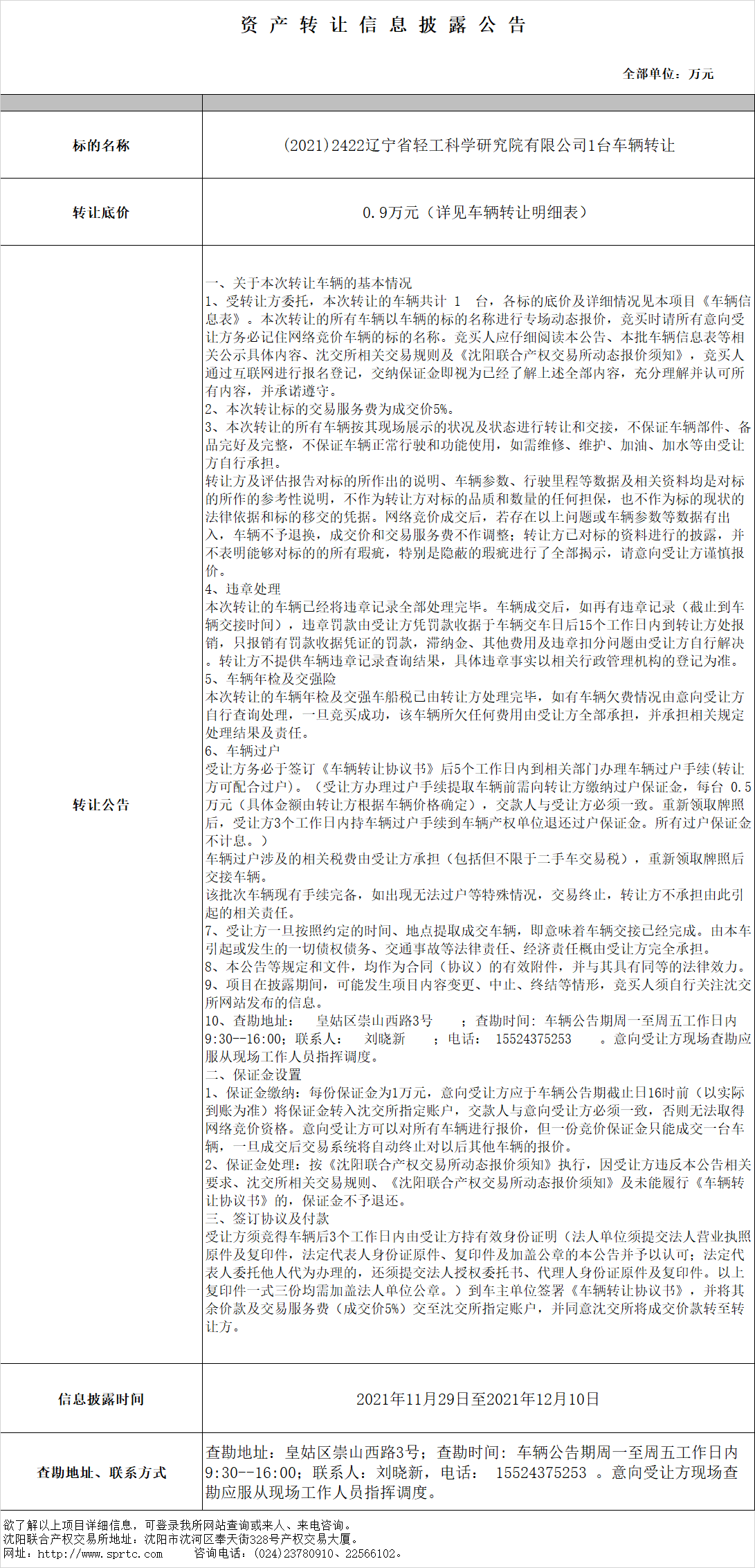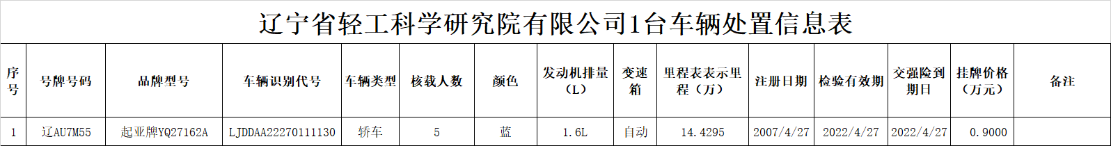 (2021)2422遼寧省輕工科學研究院有限公司1臺車輛轉讓