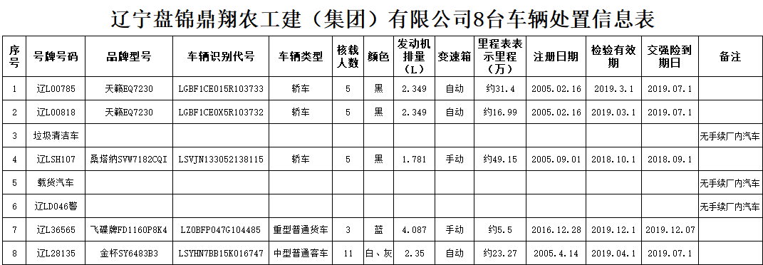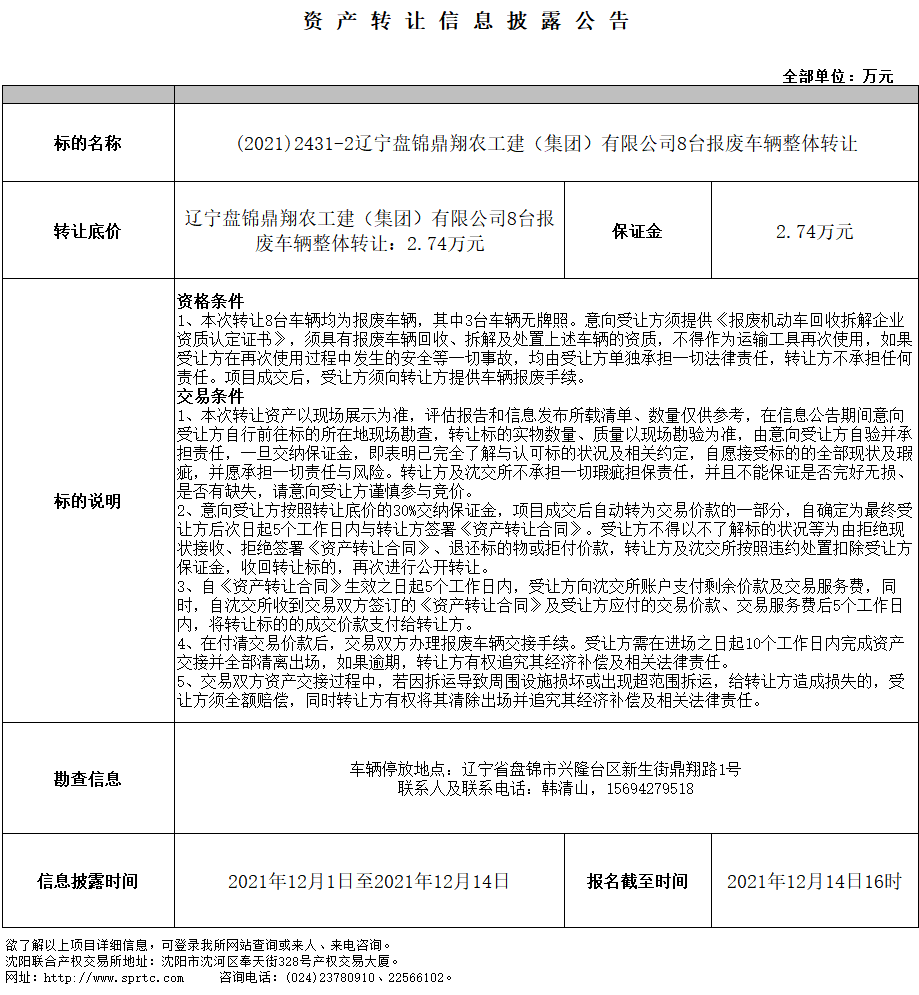 (2021)2431-2遼寧盤錦鼎翔農(nóng)工建(集團(tuán))有限公司8臺報(bào)廢車輛整體轉(zhuǎn)讓