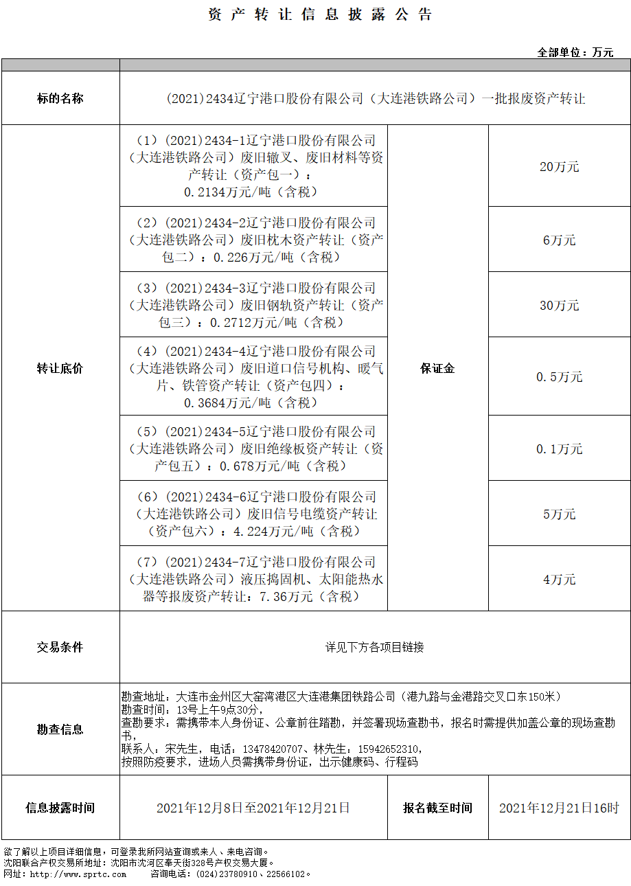 (2021)2434遼寧港口股份有限公司(大連港鐵路公司)一批報(bào)廢資產(chǎn)轉(zhuǎn)讓