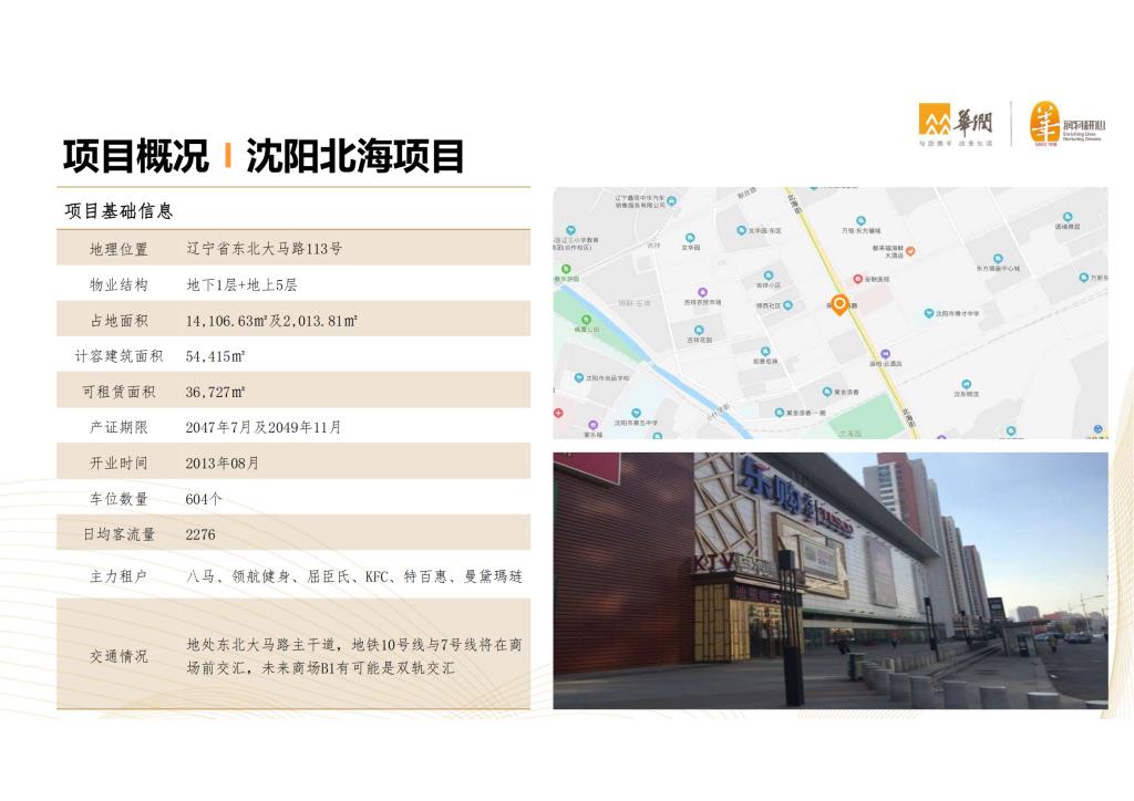 房產(chǎn)名稱(chēng):沈陽(yáng)北海樂(lè)都匯地理位置:遼寧省東北大馬路113號(hào)物業(yè)結(jié)構(gòu):地下1層+地上5層占地面積:14,106.63㎡及2,013.81㎡計(jì)容建筑面積:54,415㎡可租賃面積:36,727㎡車(chē)...